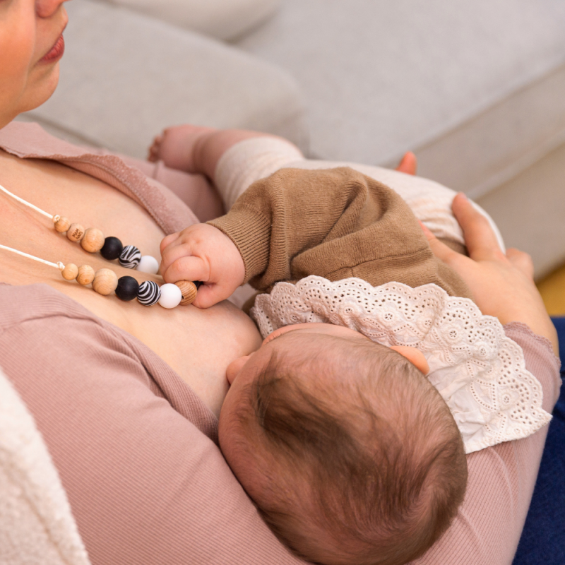 Lors de mon premier allaitement, j’ai découvert l’utilité d’un bracelet d’allaitement : un petit accessoire simple, mais tellement précieux pour se souvenir de quel côté bébé avait tété. Lors du second, j’ai adopté un collier de portage : pratique pour occuper les petites mains et éviter que bébé tire sur les cheveux ou les vêtements pendant les câlins ou la tétée.