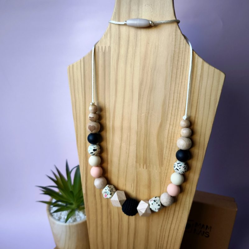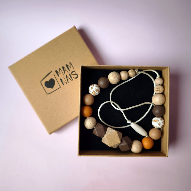 Chez MAMNAIS, chaque collier d’allaitement est conçu avec des matériaux soigneusement sélectionnés, comme le silicone alimentaire et le bois de hêtre naturel.
