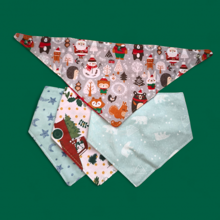 - 2 bavoirs bandanas “anti-bave” en tissu coton imprimé Oeko Tex et en coton nid d’abeille.