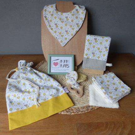 Vous pouvez y ajouter un soin naturel comme un savon surgras (utilisable dès la naissance) ou encore, un accessoire de puériculture ! C’est un cadeau de naissance unique et tendance à composer !