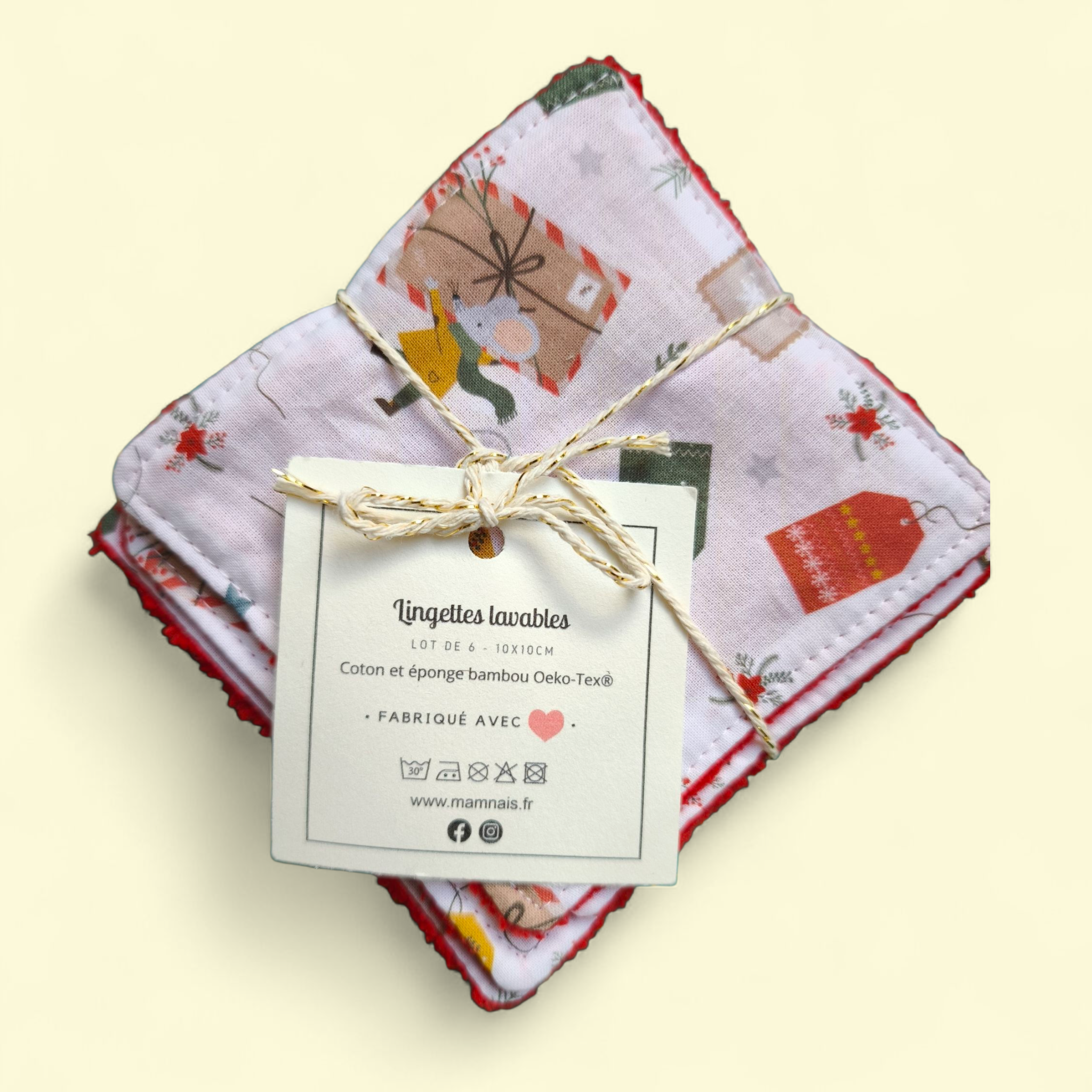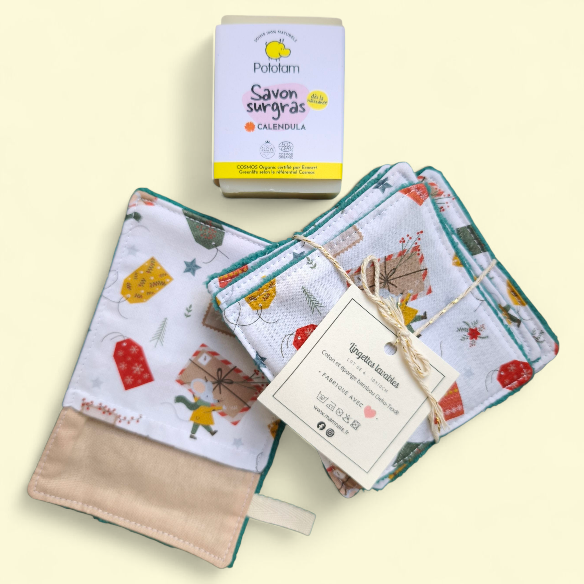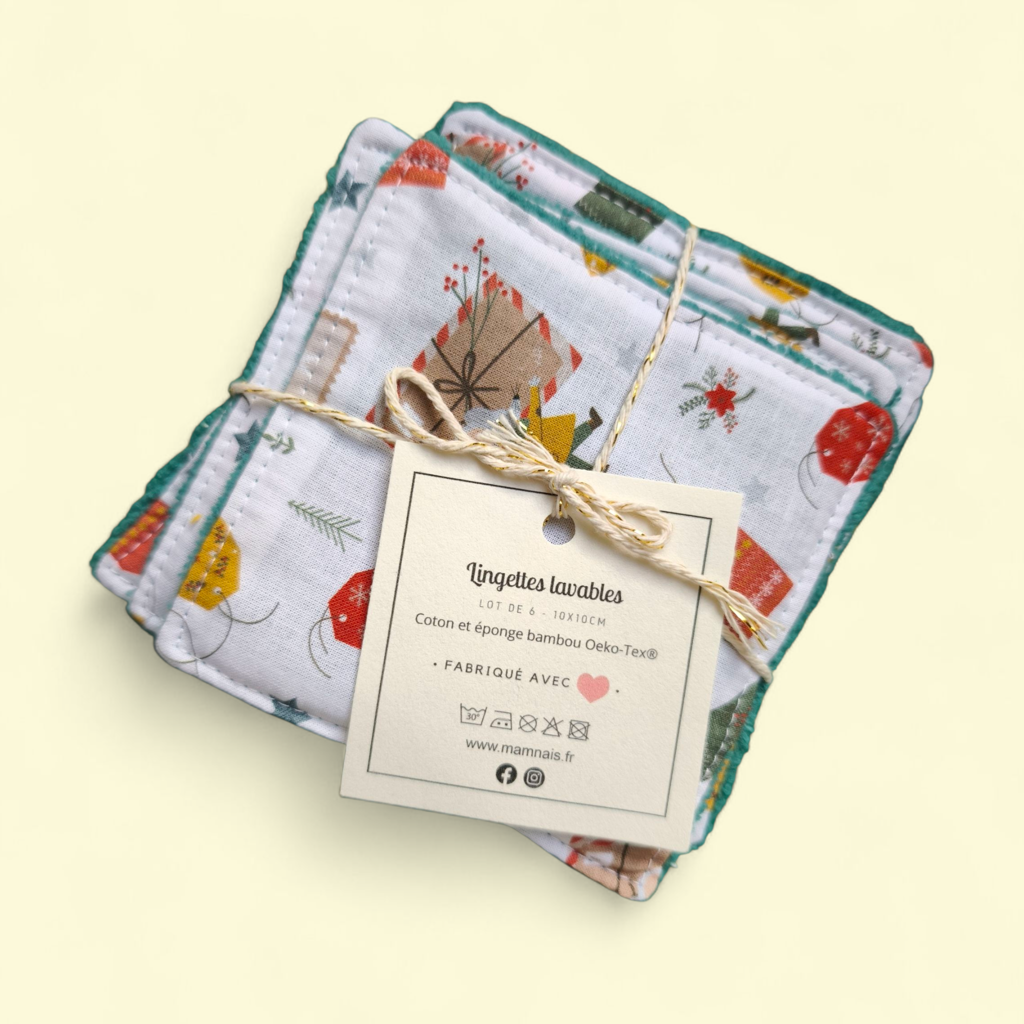 - 1 lot de 6 lingettes lavables
