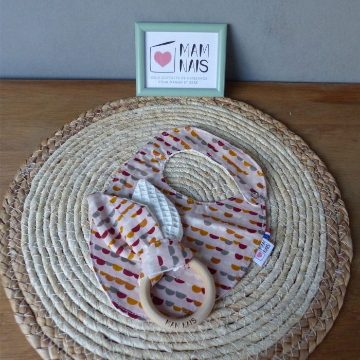 Découvrez ce mini coffret de naissance pour bébé “Pontabulle”, création artisanale composée d’un duo d’accessoire :