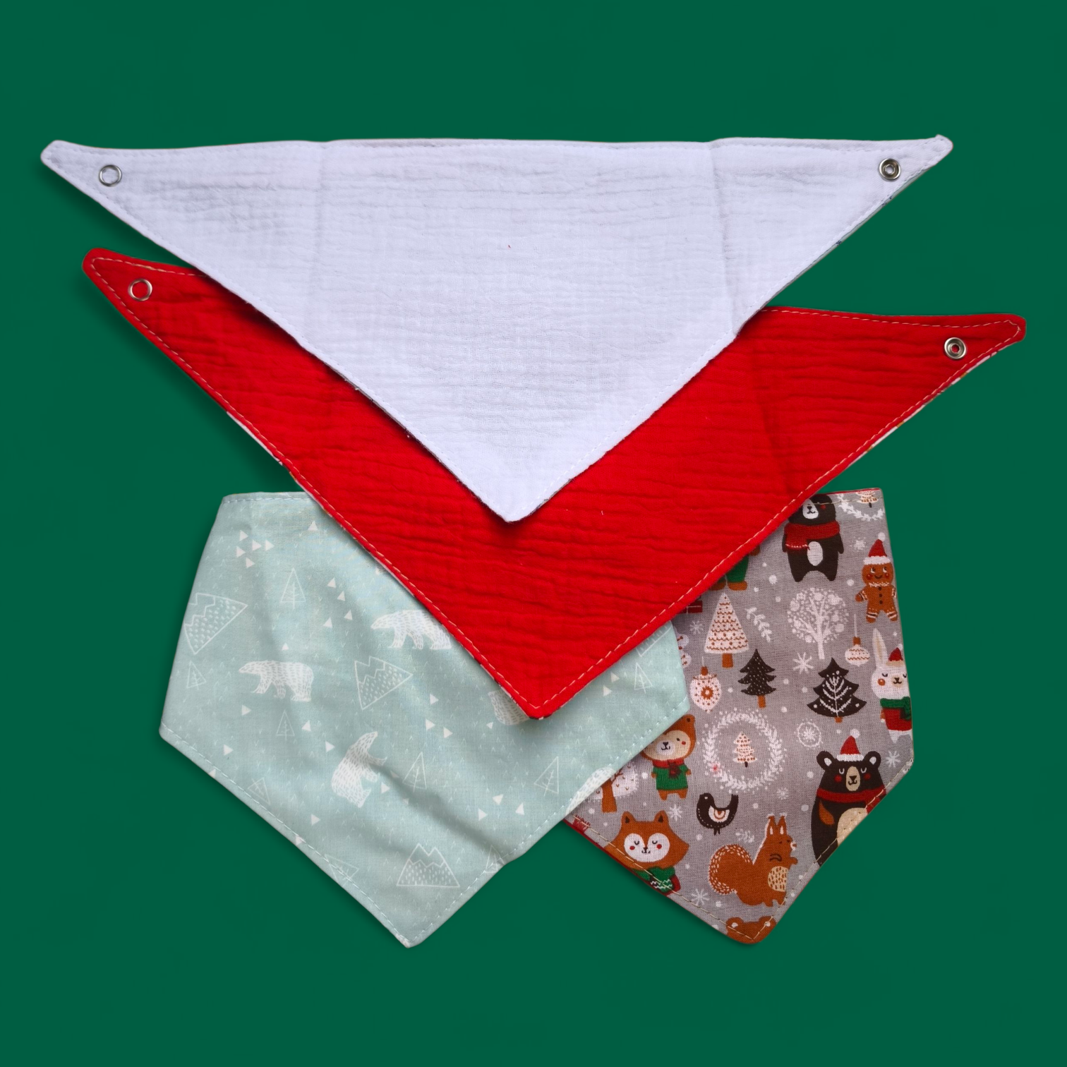 Coffret 4 bavoirs bandanas – Édition Noël 🎄🎅🏻⛄