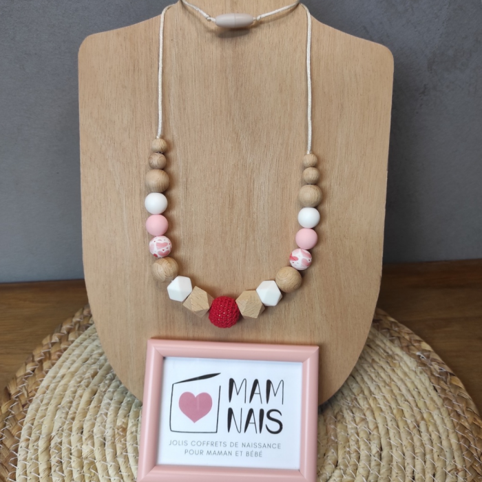 Collier d’allaitement et de portage en bois de hêtre créé et confectionné en France.