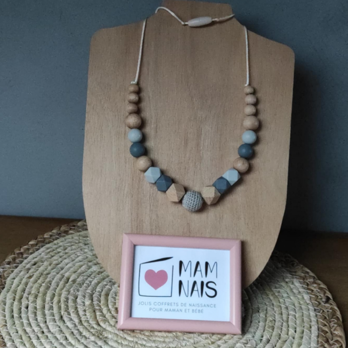 Collier d’allaitement et de portage en bois de hêtre créé et confectionné en France.