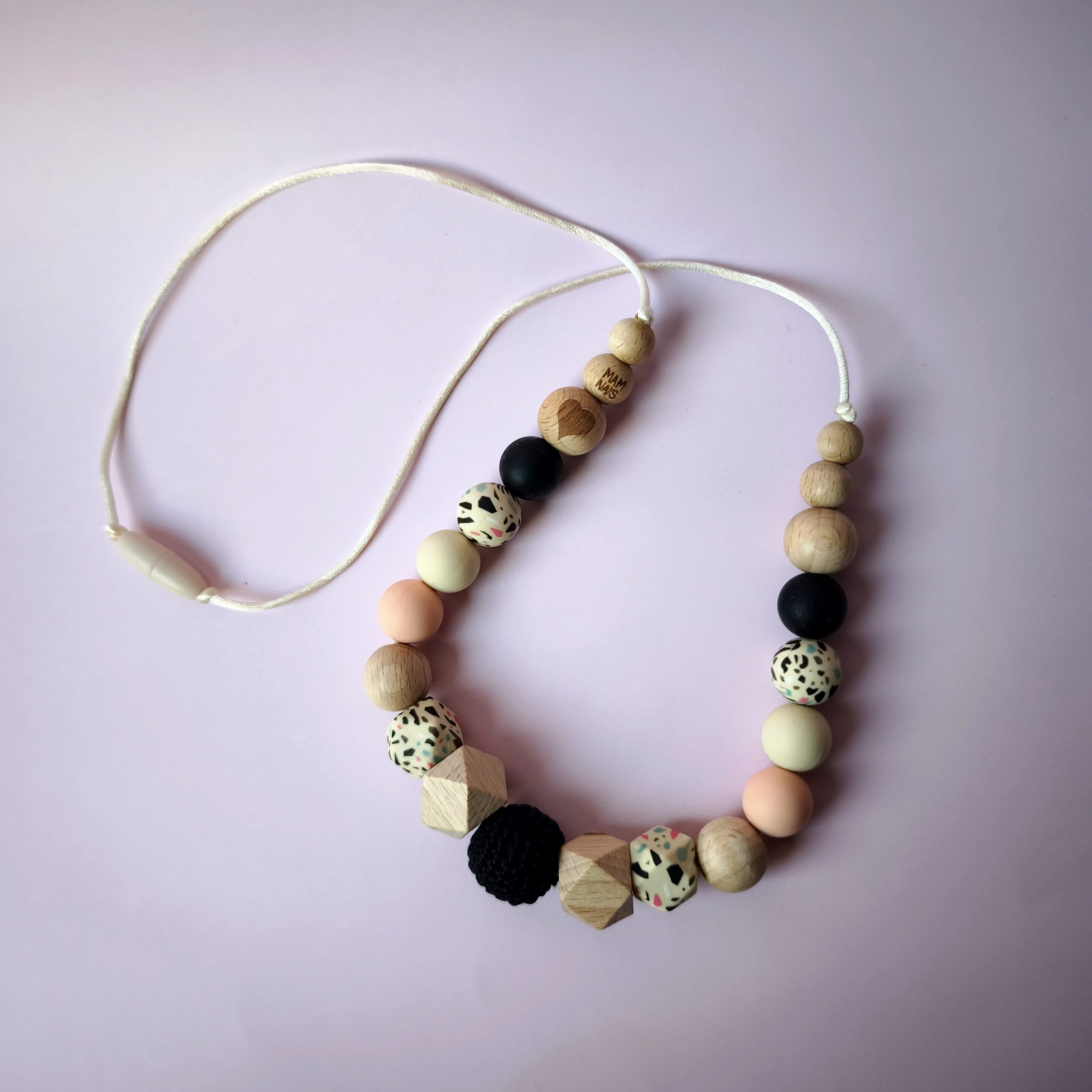 Collier d’allaitement et de portage en bois de hêtre créé et confectionné en France.